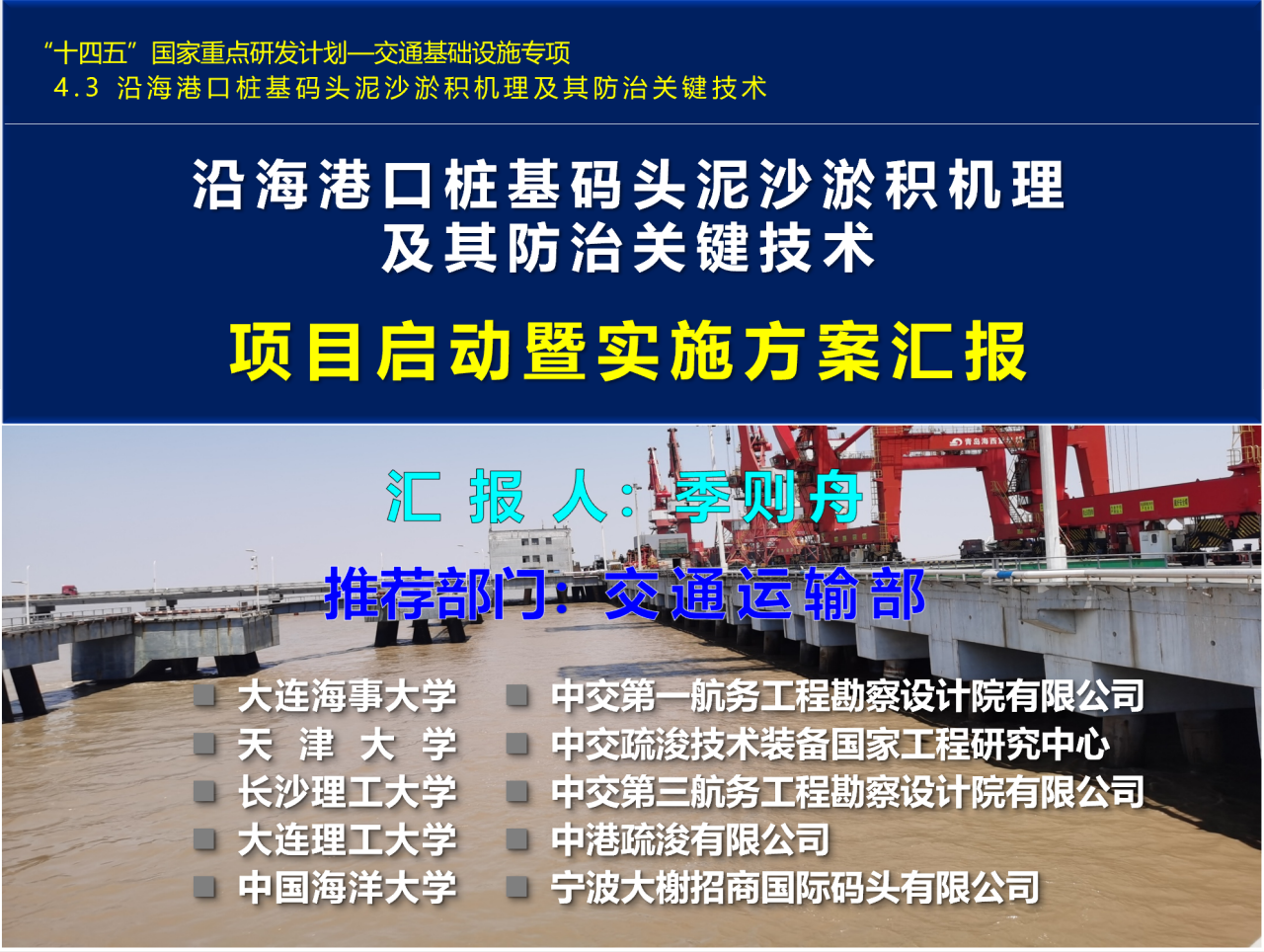 此次启动会的成功召开标志着“交通基础设施专项—沿海港口桩基码头泥沙淤积机理及其防治关键技术”项目的研究工作正式全面展开。项目组全体成员将按照既定的研究计划开展工作,突破桩基码头服役寿命技术发展的主要瓶颈,支撑我校交通运输工程学科的建设与发展。