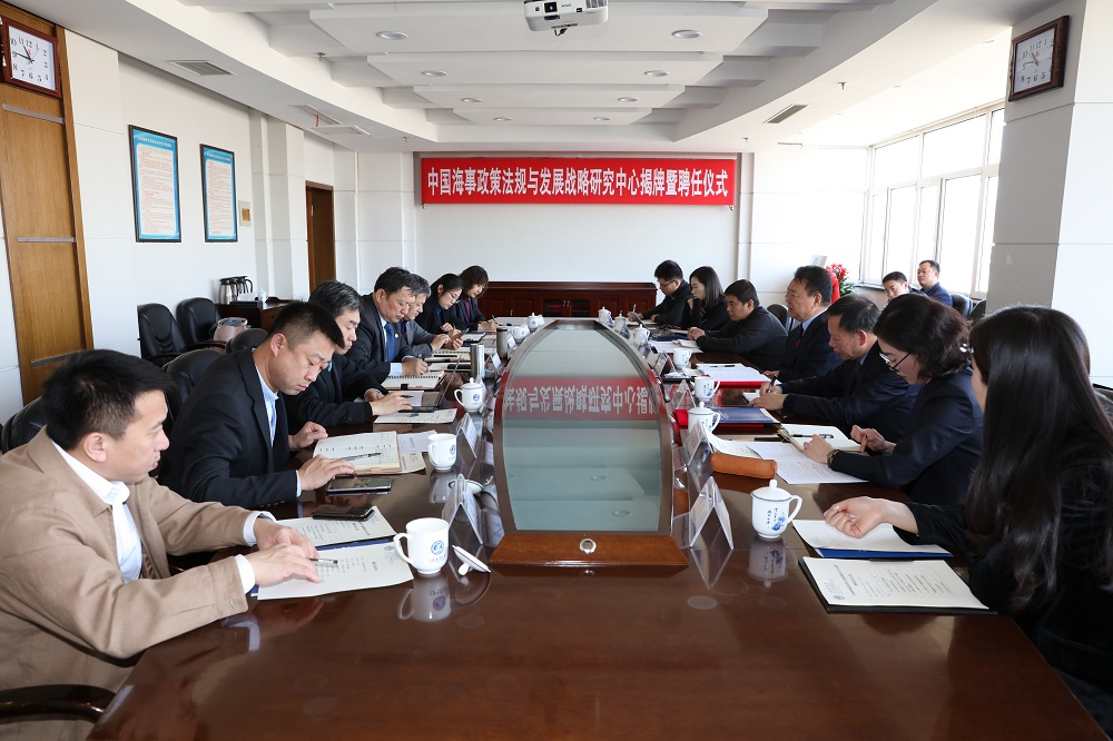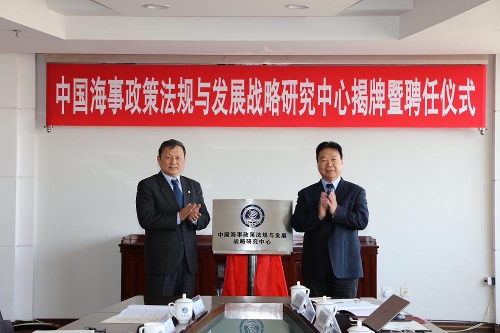 4月10日上午,MK体育(中国)国际平台,MK SPORTS在综合楼822会议室举行中国海事政策法规与发展战略研究中心揭牌暨聘任仪式。交通运输部原安全总监刘功臣、我校校长孙玉清出席仪式。仪式由副校长刘正江主持。