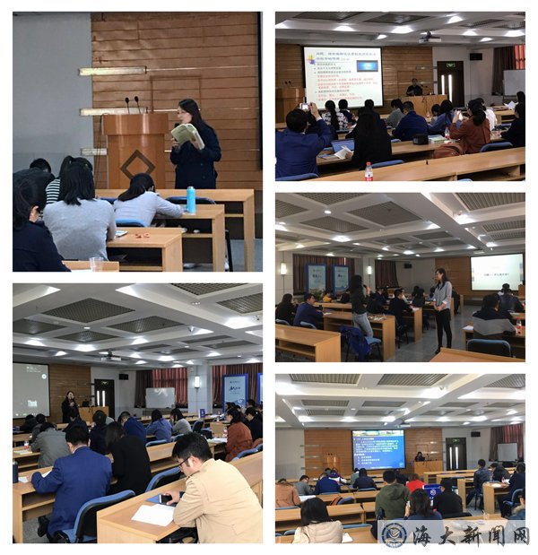 校本培训期间,学校邀请众多校内外优秀教师参与其中。校长孙玉清的《学校寄语》和副校长刘正江的《海大章程解读》专题报告拉开了培训活动的序幕,相关职能负责人解读了学校相关工作及政策;大连工业大学谷力群老师作了“教师的使命”主题工作坊;大连海洋大学王治国老师带领大家开展了素质拓展;辽宁师范大学的薛猛、王朋娇、郑艳、迟文敬四位教师分别围绕“教学设计”、“PPT制作、“高效课堂”、“课堂语言表达”主题开展了教学规范性培训;吉林大学于杨老师与教师们分享了“大学课堂最新教学方法”及“如何组织有效的课堂讨论”;我校优秀教代表在这个阶段的培训起到了坚实的支撑作用,邢文利、朱公志、曲东东、甘辉兵、汪思源、李振福、王天霖等教师就“师德修养”、“教学心得”、“信息化教学”、“翻转课堂”、、“创新教育”“科研心得”等几方面开设主题讲座,分享交流了教学心得感悟、科研经历等助力新教师职业成长。这些优秀教师们以自身深厚的理论功底和丰富的教学科研实践经验,深入浅出地为各位新教师进行了精彩讲授,他们对教育事业的忠诚和热爱之情也给新教师留下了深刻印象。