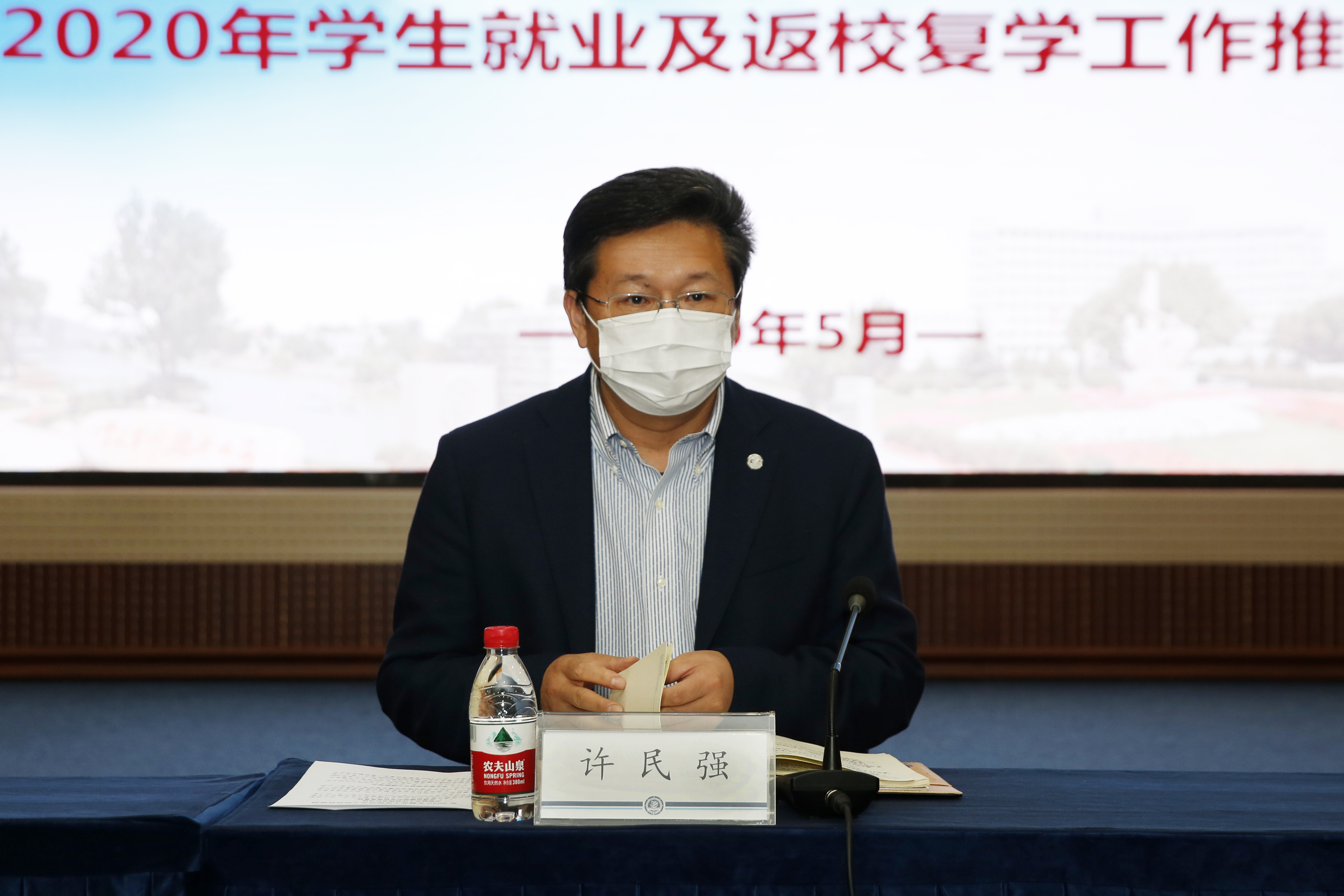 为全面落实党中央、国务院关于坚决打赢新冠肺炎疫情防控阻击战的决策部署,统筹推进学生就业与返校复学工作,确保返校复学平稳有序、实现毕业生高质量充分就业,学校于5月7日下午在综合楼凌水国际会议厅召开2020年学生就业及返校复学工作推进会。校党委副书记许民强出席会议,学生工作部、研究生院、学生就业指导中心主要负责同志以及各学院主管学生工作副书记和毕业班指导员参加了会议。会议由学生就业指导中心副主任张军廷主持。