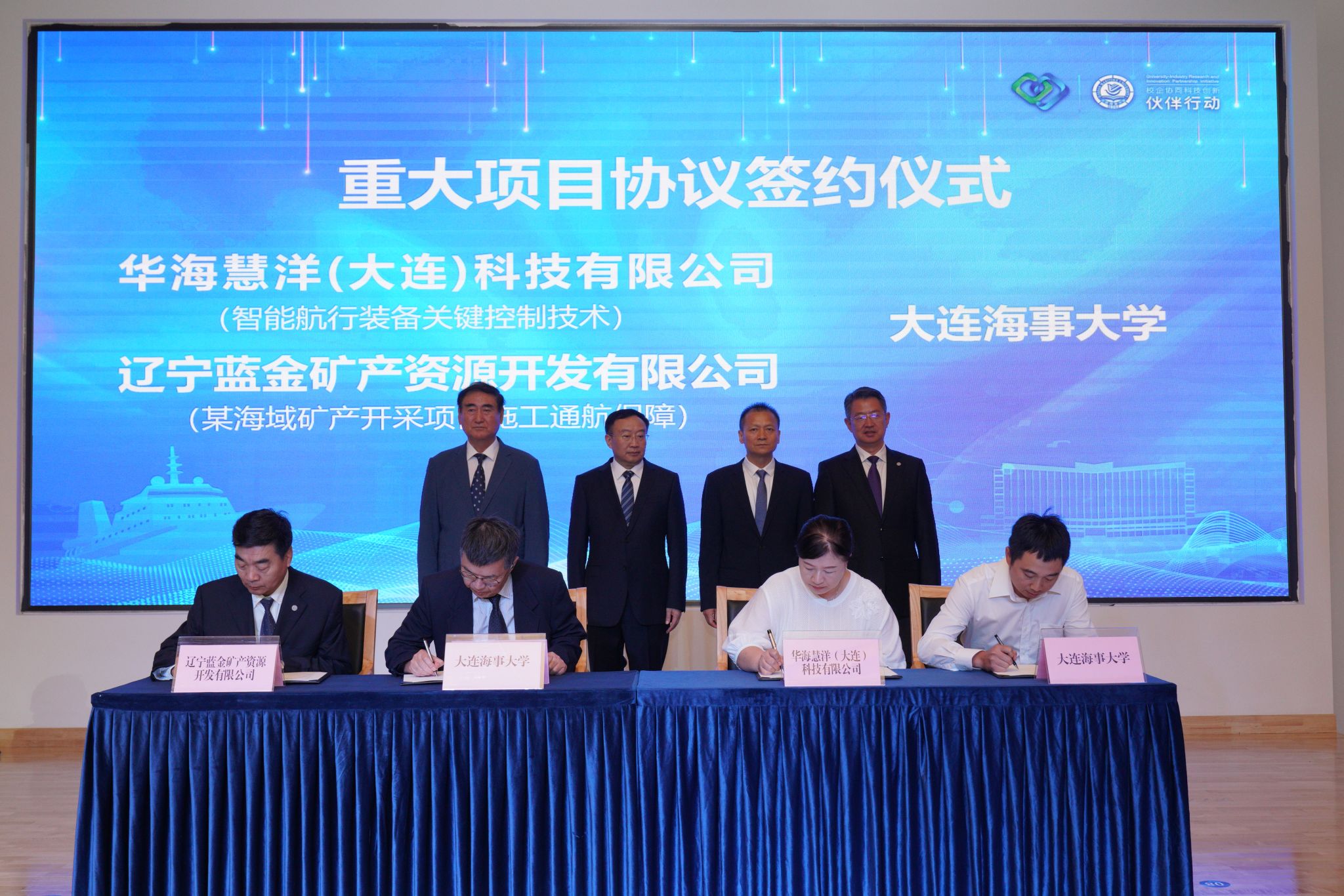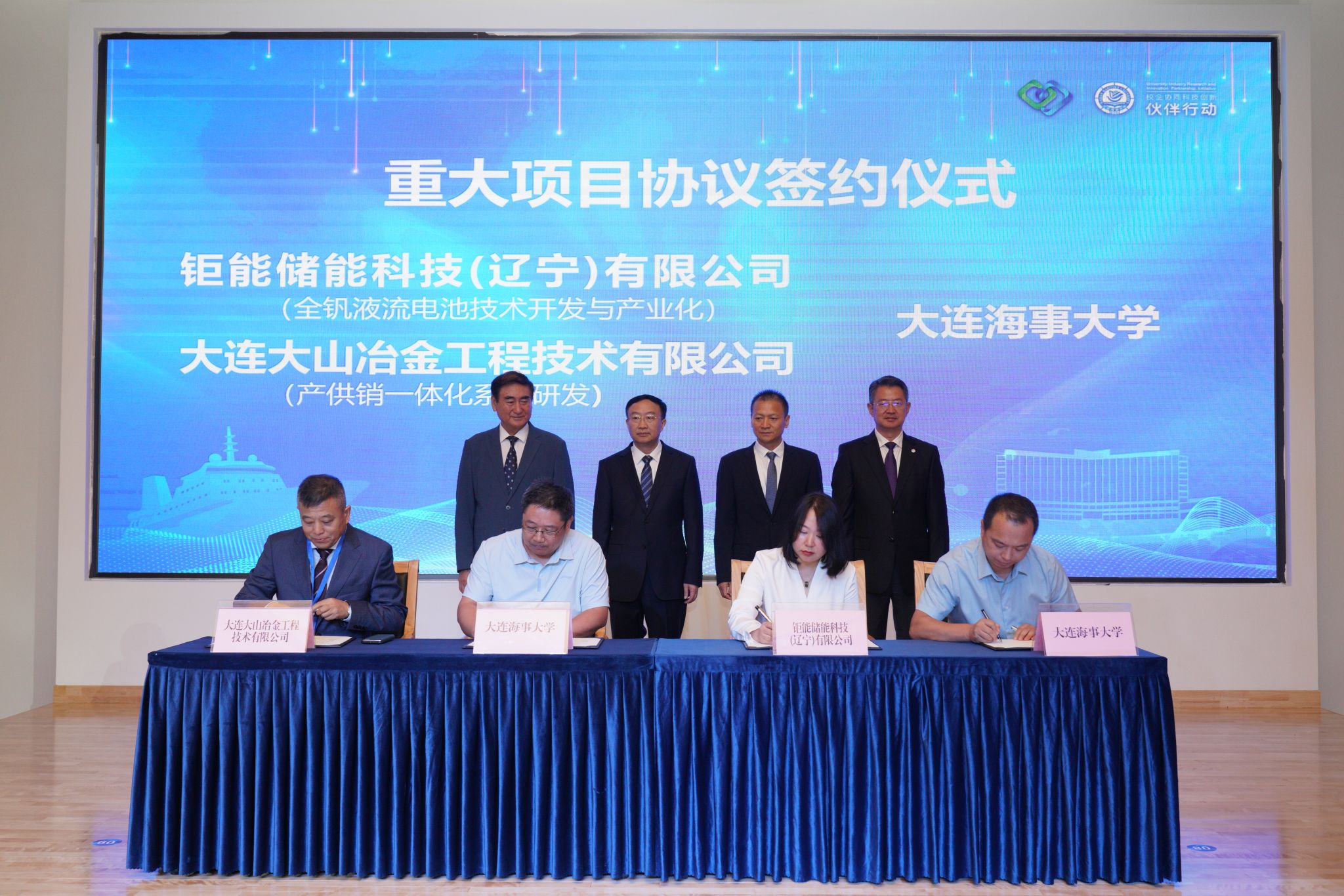 我校教师马相坤、李朝辉、张国庆、王建军分别与钜能储能科技(辽宁)有限公司、大连大山冶金工程技术有限公司、华海慧洋(大连)科技有限公司、辽宁蓝金矿产资源开发有限公司签订了重大项目协议。