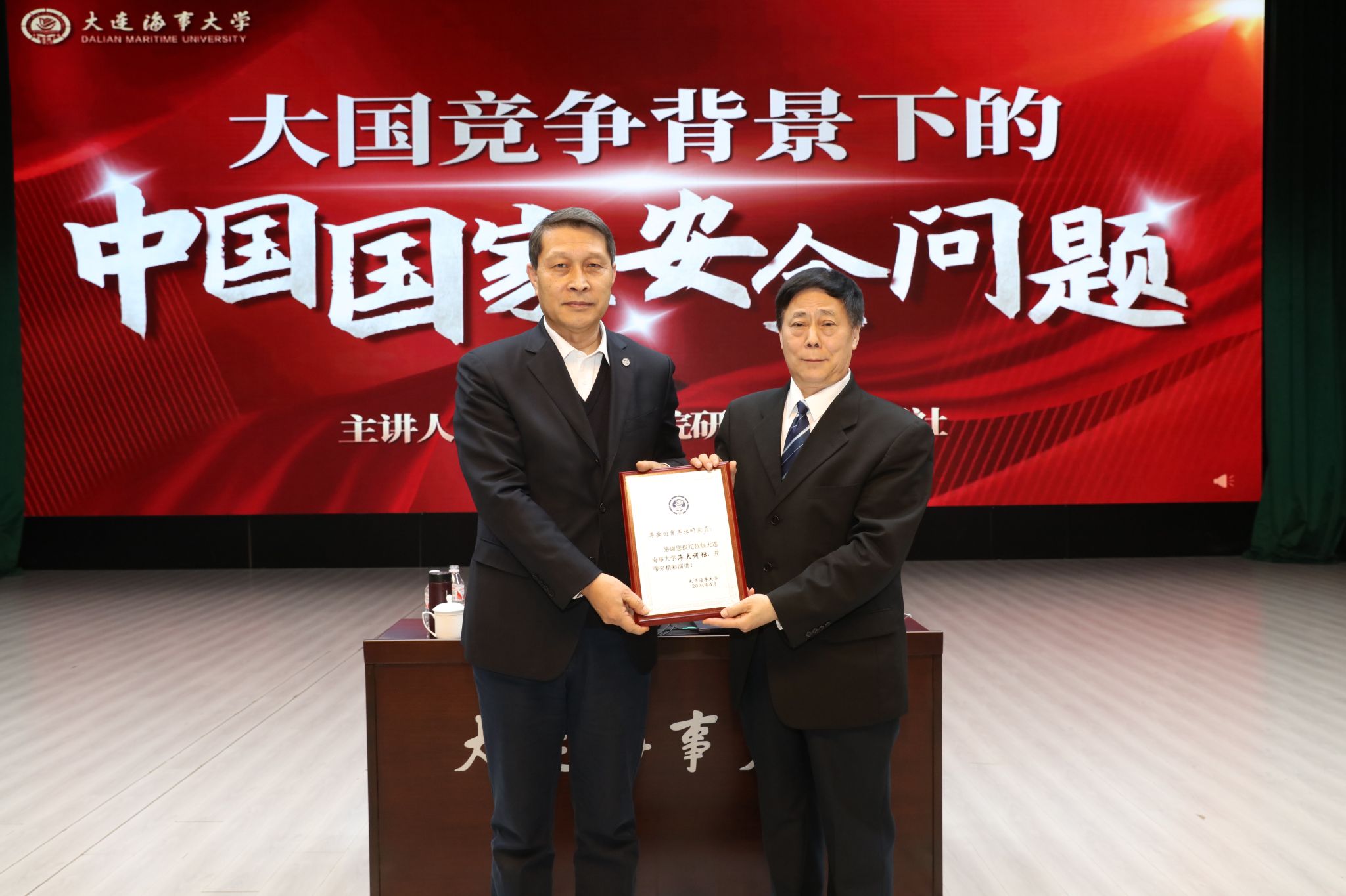 为深入贯彻落实习近平总书记关于加强国家安全教育的重要指示批示精神,落实《全省教育系统2024年全民国家安全教育日活动工作方案》要求,4月10日下午,我校邀请海军研究院研究员张军社大校在东山礼堂作“大国竞争背景下的中国国家安全问题”专题讲座。副校长赵友涛出席讲座,并代表学校为张军社颁授“海大讲坛”纪念牌。学校相关部门、学院负责人,各学院主管学生工作副书记,全体专兼职指导员和学生代表参加讲座。