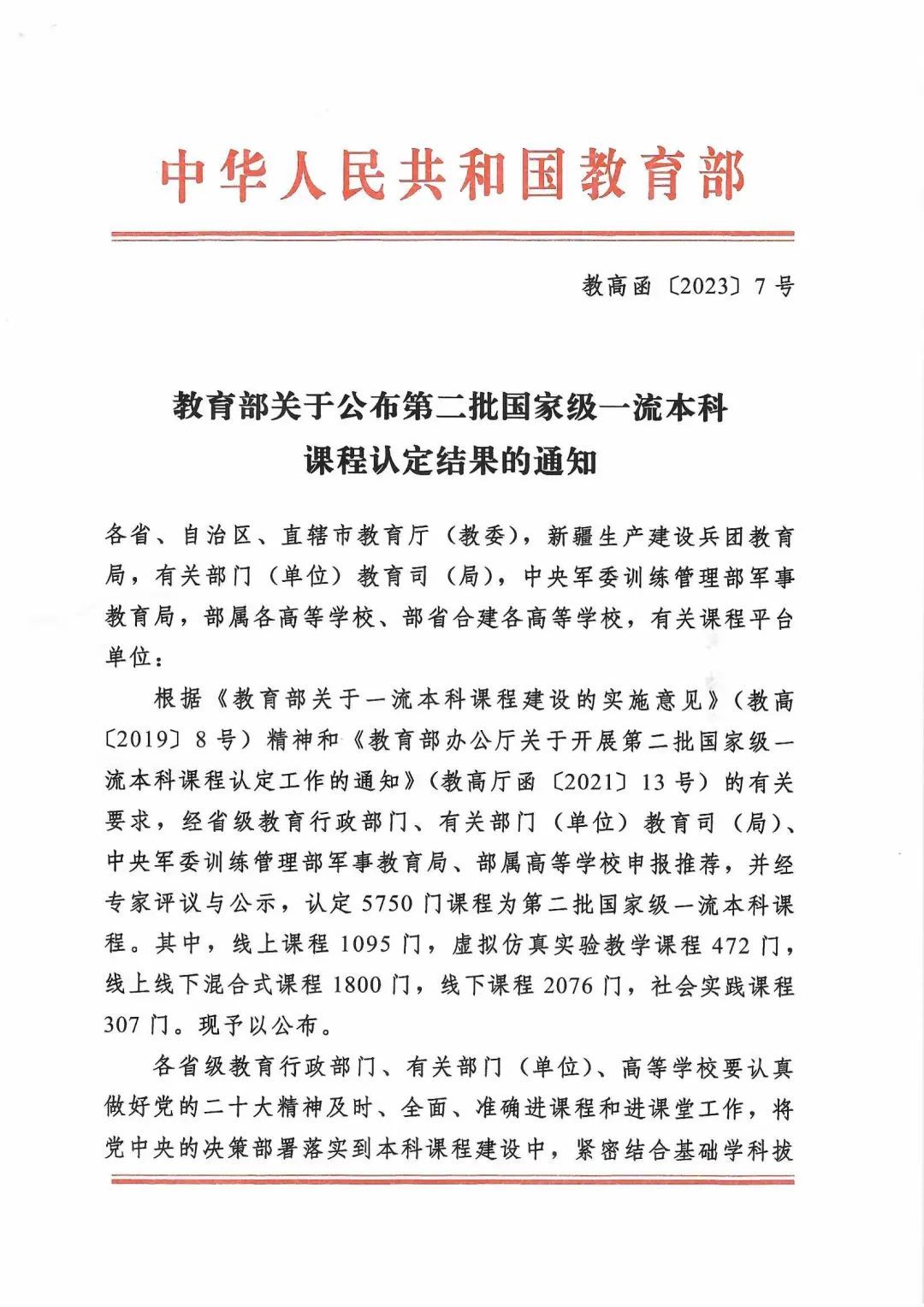 据统计,在入选第二批国家级一流本科课程的800多所院校中,我校入选的线上一流课程和虚拟仿真实验教学一流课程总数量排列第59位,凸显了学校在数字化教学资源建设方面的传统优势与成效。至此,我校共有29门课程入选国家级一流本科课程。