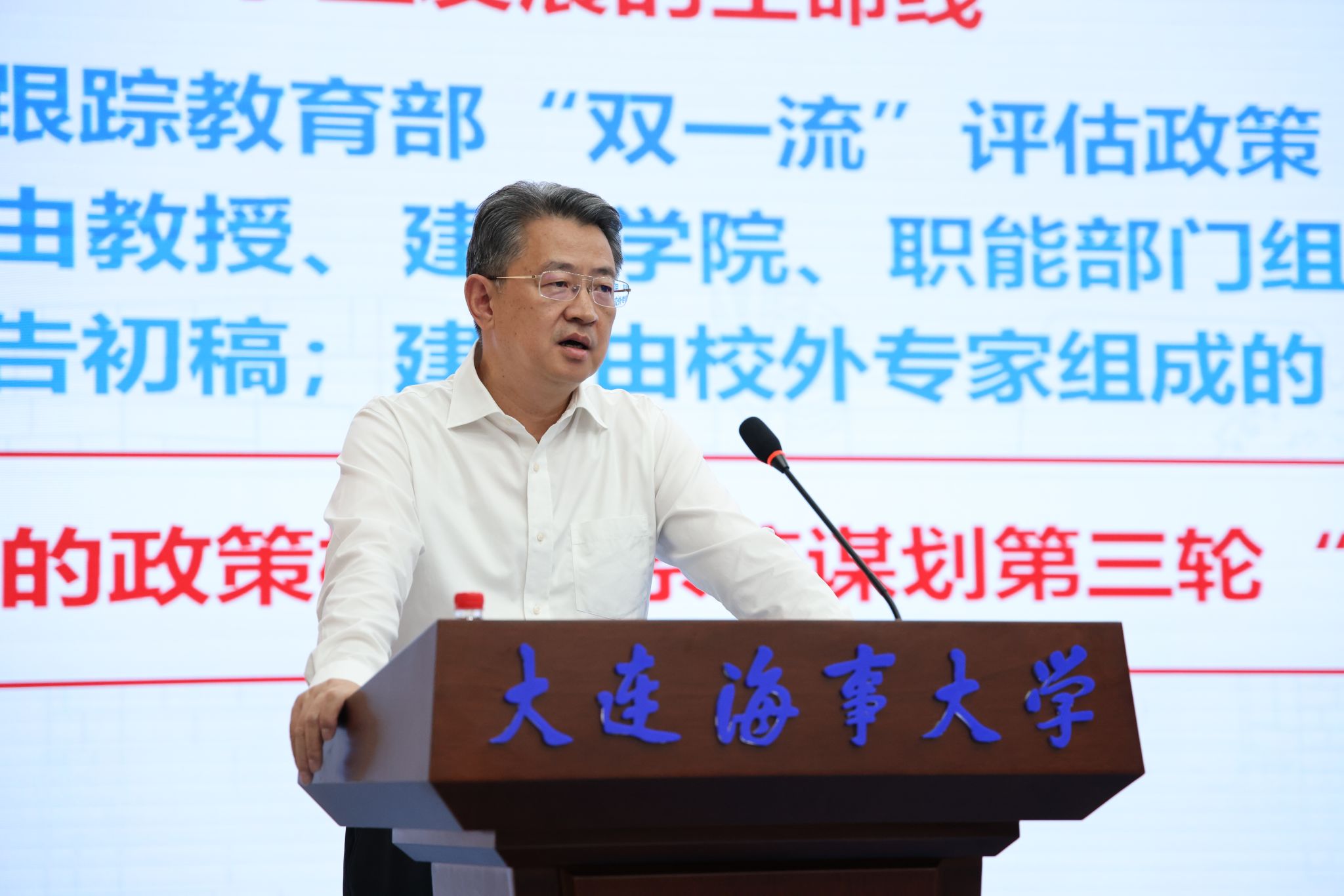 许民强首先传达了刘伟部长来校时的指示要求。他指出,在第41个教师节来临之际,刘伟部长专程来校看望慰问海大教师,调研学校建设发展情况,对学校取得的成绩给予充分肯定,并对学校未来发展提出明确要求,充分体现了部党组对海大关心关怀和殷切期待。他强调,刘伟部长的指示要求为学校“十五五”及今后一段时期的发展指明了方向,全校上下要认真学习领会、深入贯彻落实,要将刘伟部长的指示要求全面融入“十五五”学校发展规划,全力推动学校高质量发展。随后,许民强从把握方向性、关键性、共识性三个维度,交流了对“十五五”规划编制工作的思考。他强调,在“十五五”规划编制工作中,在方向性上,要坚持面向国家重大战略和行业发展前沿,牢牢把握“加快建成国内顶尖、世界一流的研究型海事大学”的目标,突出交通运输行业办学特色,强化服务国家、服务行业、服务地方的责任担当。在关键性上,要突出队伍建设和数智变革两个关键支撑,系统加强顶尖人才引育和青年人才培养,抓好干部人才队伍建设,加快推进数智化转型。在共识性上,要强化学科牵引和协同联动,以学科规划为基础,统筹专业、科研、人才、资源布局,通过“小切口”率先行动,确保“十五五”规划落地见效。他还部署了下半年重点工作,强调要落实部领导指示要求、筹备好第六次党代会、开好工会第十八次会员代表大会、筑好安全稳定底线等工作,全力推动海大实现跃升式的高质量发展。
