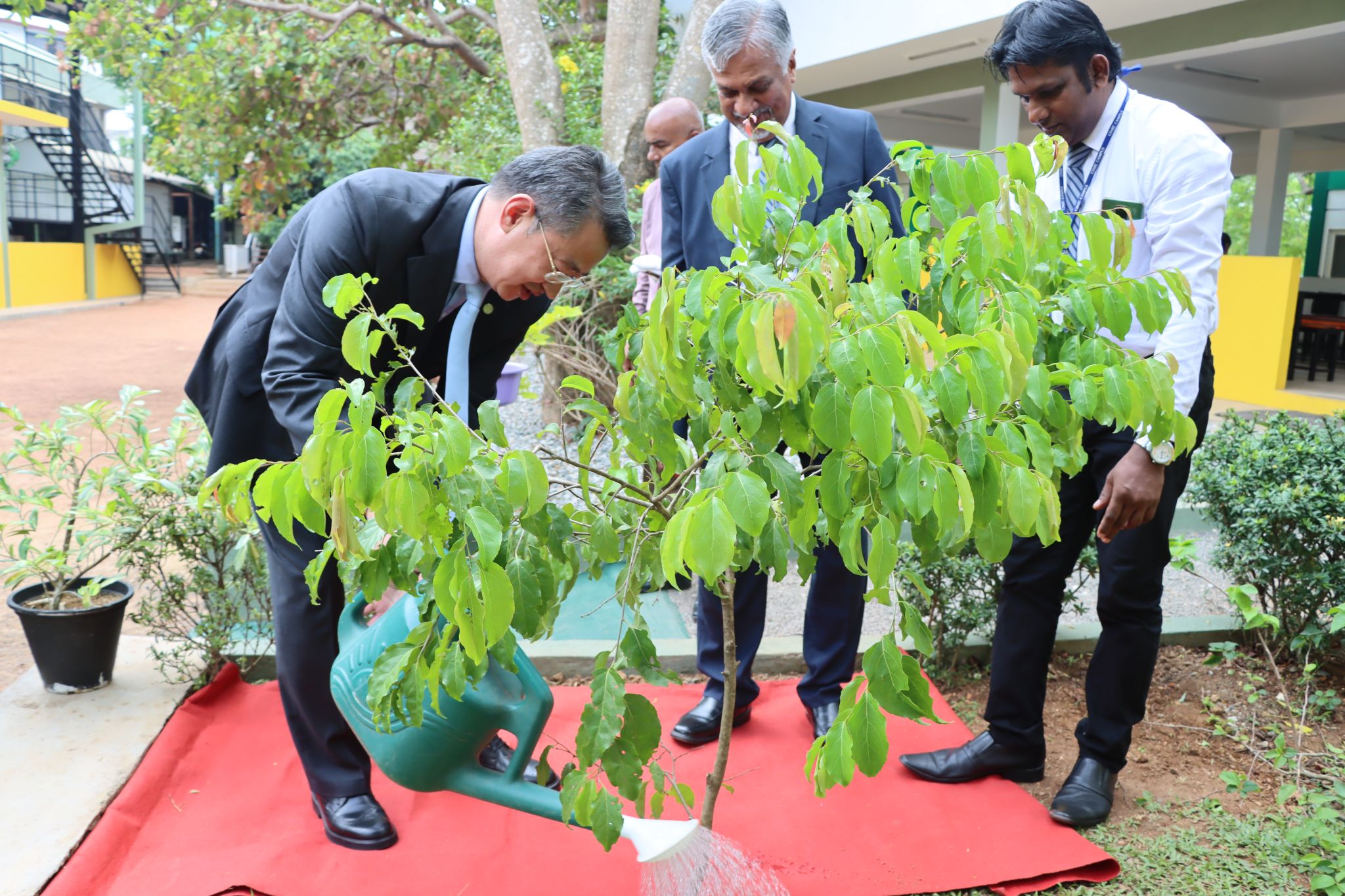 单红军为斯里兰卡校区航海培训教学楼揭牌,种下纪念树,并与斯里兰卡校区管理层就如何进一步推动项目拓展进行了深入交流。