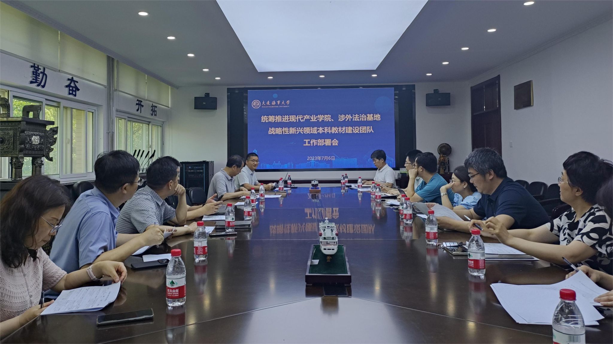 7月6日上午,学校在轮机楼317会议室召开统筹推进现代产业学院、涉外法治基地、战略性新兴领域本科教材建设团队工作部署会。教务处处长吴桂涛、现代产业学院负责人、涉外法治基地负责人、战略性新兴领域本科教材建设团队负责人以及负责人所在学院的教学院长参加了会议。会议由教务处副处长赵俊豪主持。