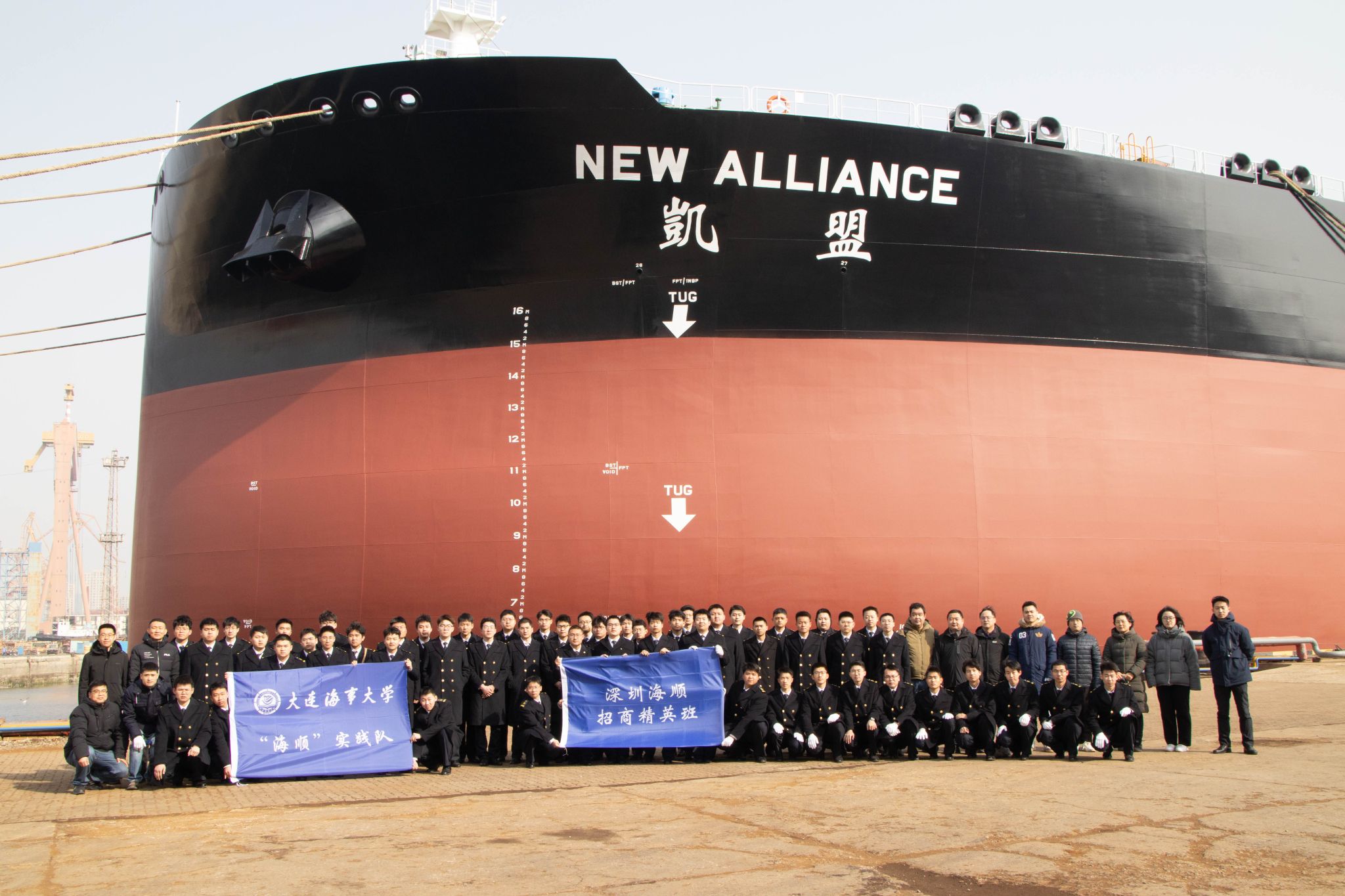 3月2日,学校教务处组织航海学院、轮机工程学院部分教师和2022级招商校企合作班学生赴大连船舶重工(大连造船厂)参观招商轮船新交付船舶“凯盟”轮,深圳海顺海事服务有限公司船员招聘部经理谢元辉、学校教务处副处长王启福领队参加。