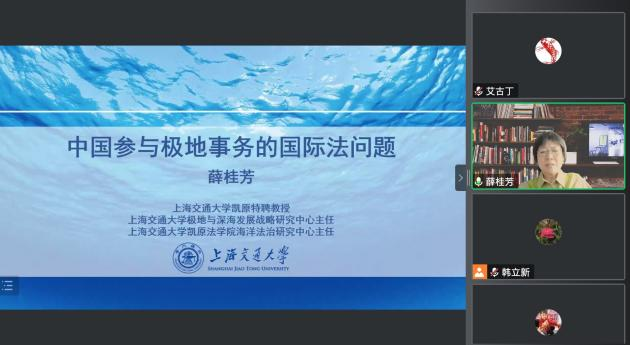 10月14日上午,我校2022年第16期(总第48期)主题为“中国参与极地事务的国际法问题”浩海沙龙于线上成功举办。本次沙龙由我校浩海工程培养人选韩立新教授主持,主讲人为上海交通大学凯原特聘教授、博士生导师、上海交通大学极地与深海发展战略研究中心主任、上海交通大学凯原法学院海洋法治研究中心主任薛桂芳教授。来自MK体育(中国)国际平台,MK SPORTS、中山大学、南京大学、厦门大学、对外经贸大学、辽宁科技大学、航科院、极地中心等学校和单位的近100人参加本次沙龙。