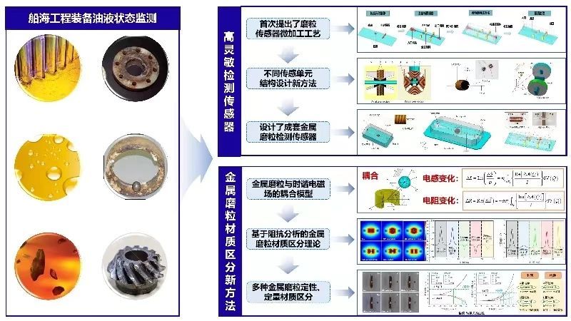 “船舶与海洋工程装备磨损状态监测关键技术”成果针对船海工程装备磨损模式识别准确率低、磨损程度的早期监测与识别能力差、磨损位置无法精准定位和磨损状态监测装置检测周期长的瓶颈技术难题,发明了边界波形混沌特征参数和小波分形维数的磨粒形貌识别技术,发明了金属磨粒高灵敏检测传感器,同时提出了基于阻抗分析的金属磨粒材质区分新方法,研发了智能、集成的磨损状态监测装备并在多个船舶和海洋工程装备上应用。该成果获得自主知识产权47项,包括国家发明专利31项,发表高水平论文148篇。相关成果形成了完全自主创新的船海工程装备磨损状态监测关键技术体系,降低了装备的故障率,大幅减少了停机检修时间,推动了船海工程装备的安全可靠发展,提升了我国船海工业核心竞争力。
