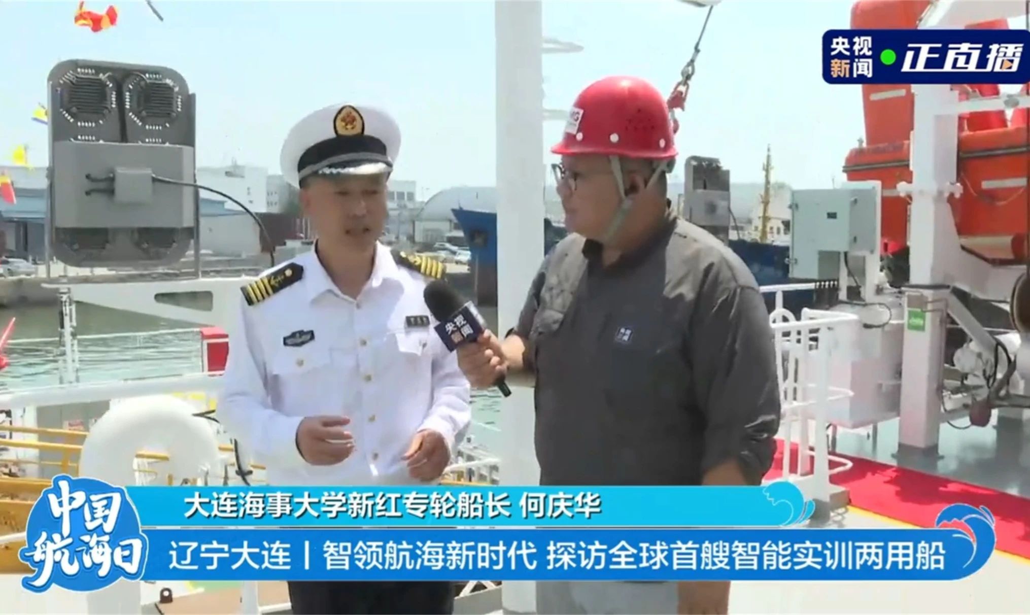 智慧航海,畅行未来,共绘蓝图,向海图强。今天是第20个中国航海日,学校举行“航海向未来”科普活动。央视新闻客户端、微博等新媒体平台对活动进行了全程直播。跟随央视记者的镜头,走进我校“新红专”轮,见证全球首个智能研究与实训两用船的科技光芒。