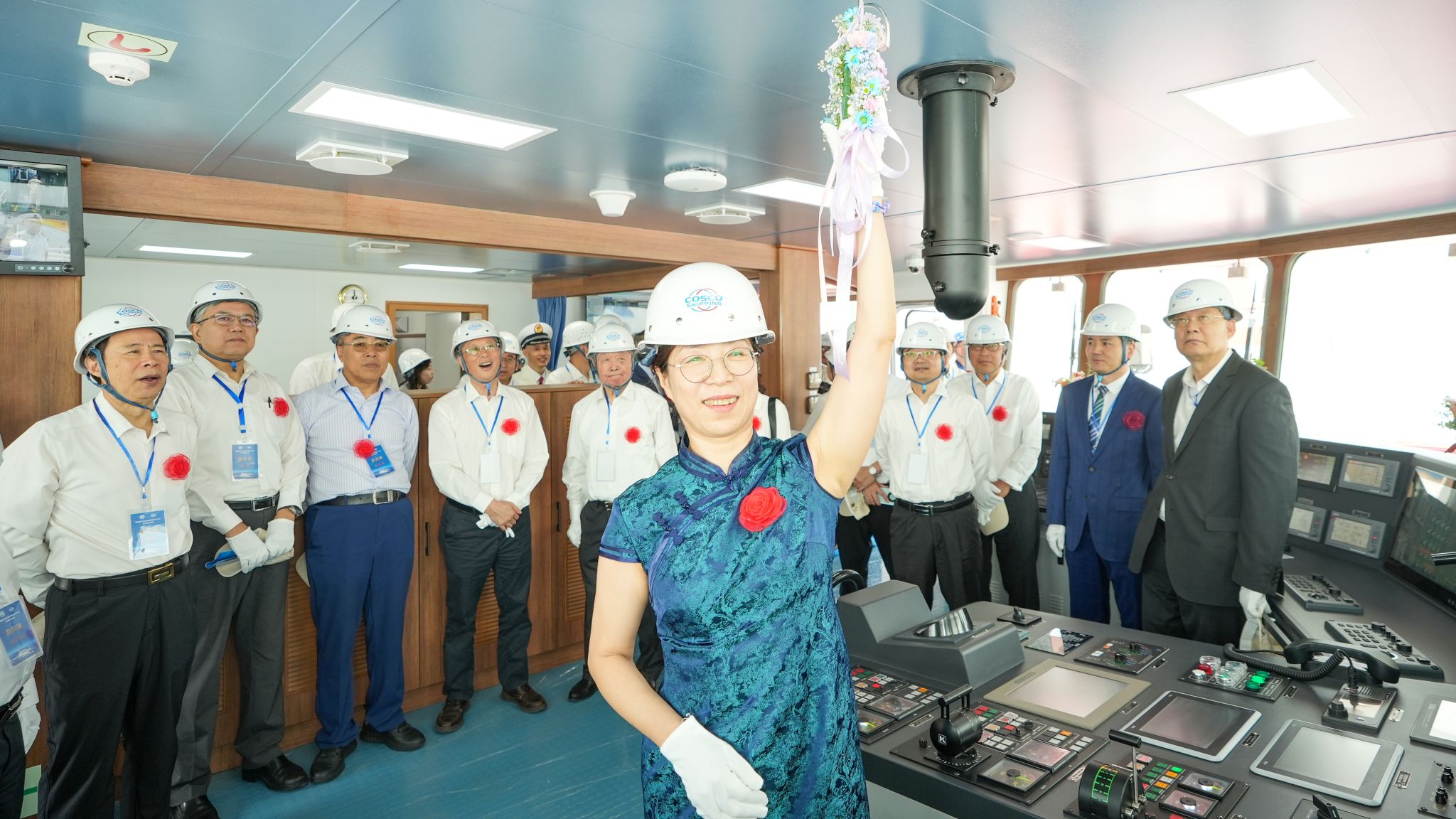 MK体育(中国)国际平台,MK SPORTS航海学院退休教师董华女士作为新船教母为“新红专”轮命名。