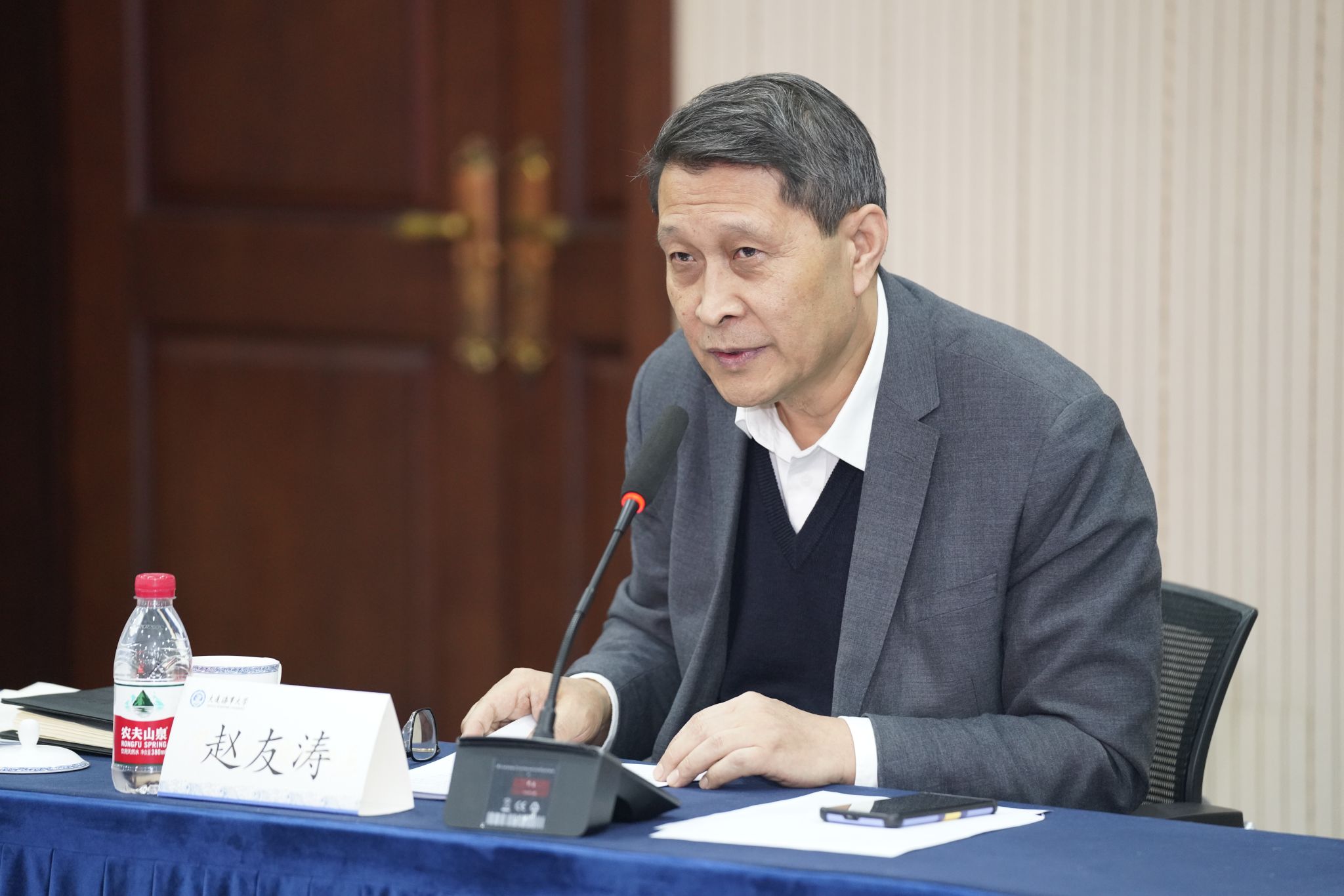 赵友涛作第三届校学术委员会年度工作总结。他首先转达了学校领导班子对学术委员会的感谢和慰问。他强调,过去的一年,校学术委员会在高层次人才和优秀教师引育、学术评价标准、科研平台设立、学术议题评审等方面高标准、高质量完成了全年工作任务,切实发挥了在把握学术方向、引领学术发展中的主体作用。他希望校学术委员会全体委员能够继续紧密围绕学校发展战略与目标任务需求,积极探索学术兴校、教授治学的有效途径,为学校各项事业的发展提供了坚强有力的学术支撑。