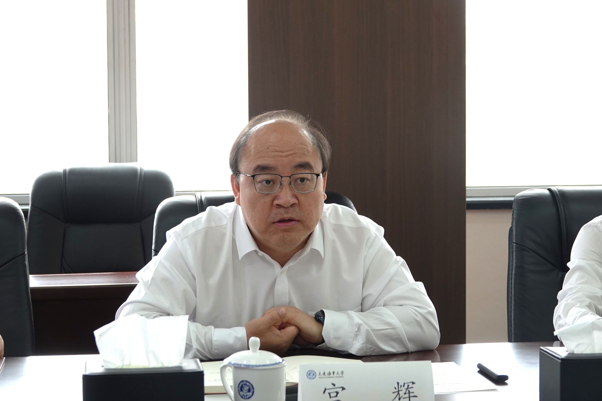 许民强代表学校对宫辉一行的到来表示热烈欢迎,他简要介绍了学校的发展历程并表示,重庆交通大学与海大根脉相连、使命相通,希望两校以本次调研交流为新起点,携手并肩,扎实推进各领域务实合作,共同为加快建设交通强国贡献力量。