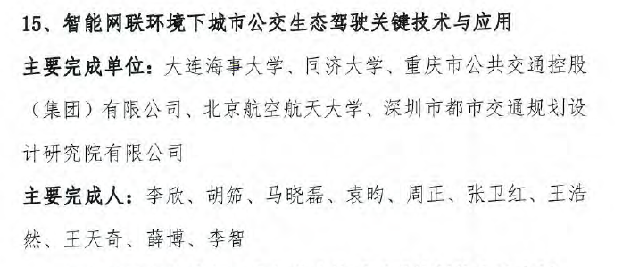 近日,2022年度中国智能交通协会科学技术奖获奖名单正式公布,由我校交通运输工程学院李欣教授主导完成的“智能网联环境下城市公交生态驾驶关键技术与应用”成果荣获科技进步奖二等奖,是我校首次以第一完成单位在中国智能交通协会科学技术奖中获奖。