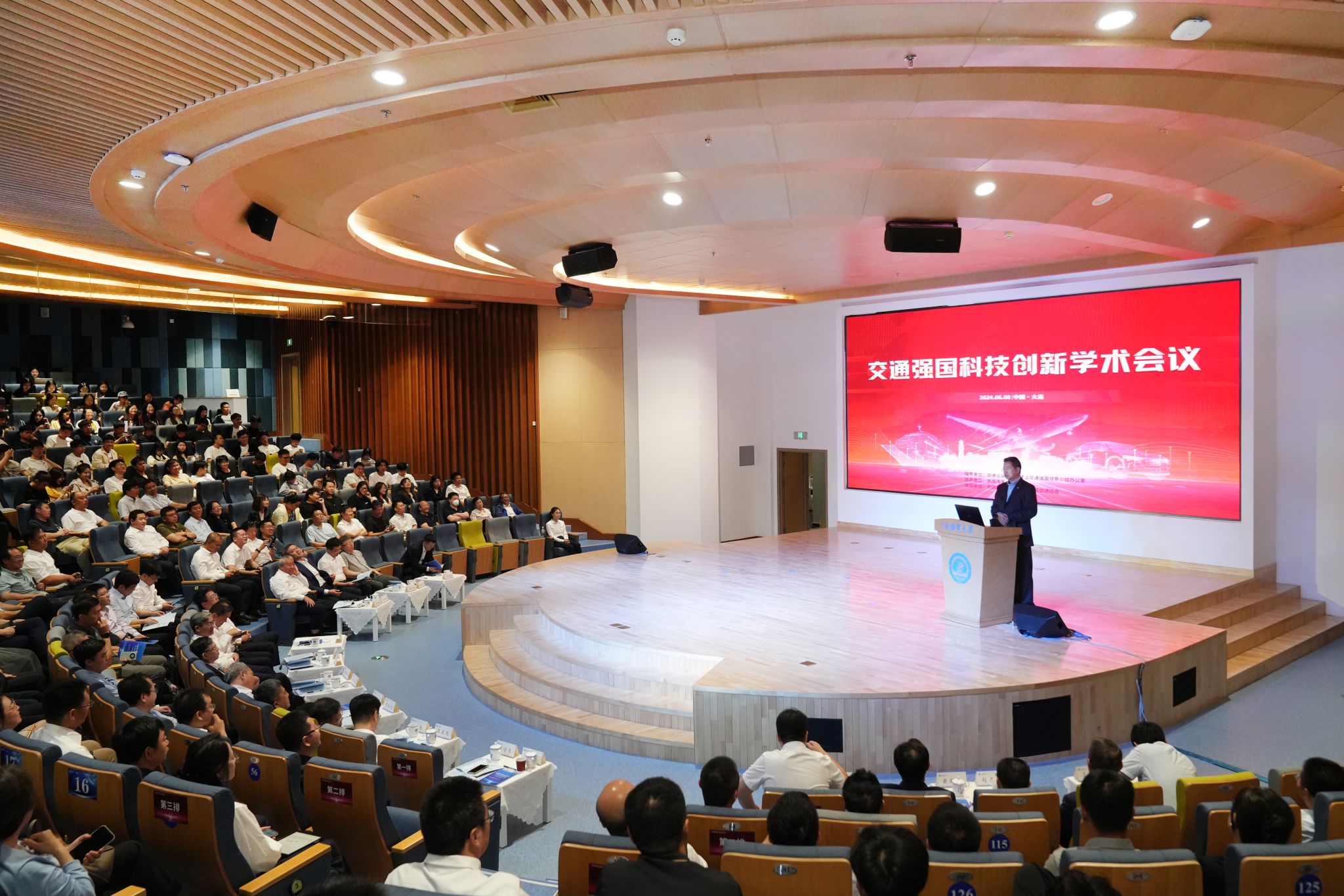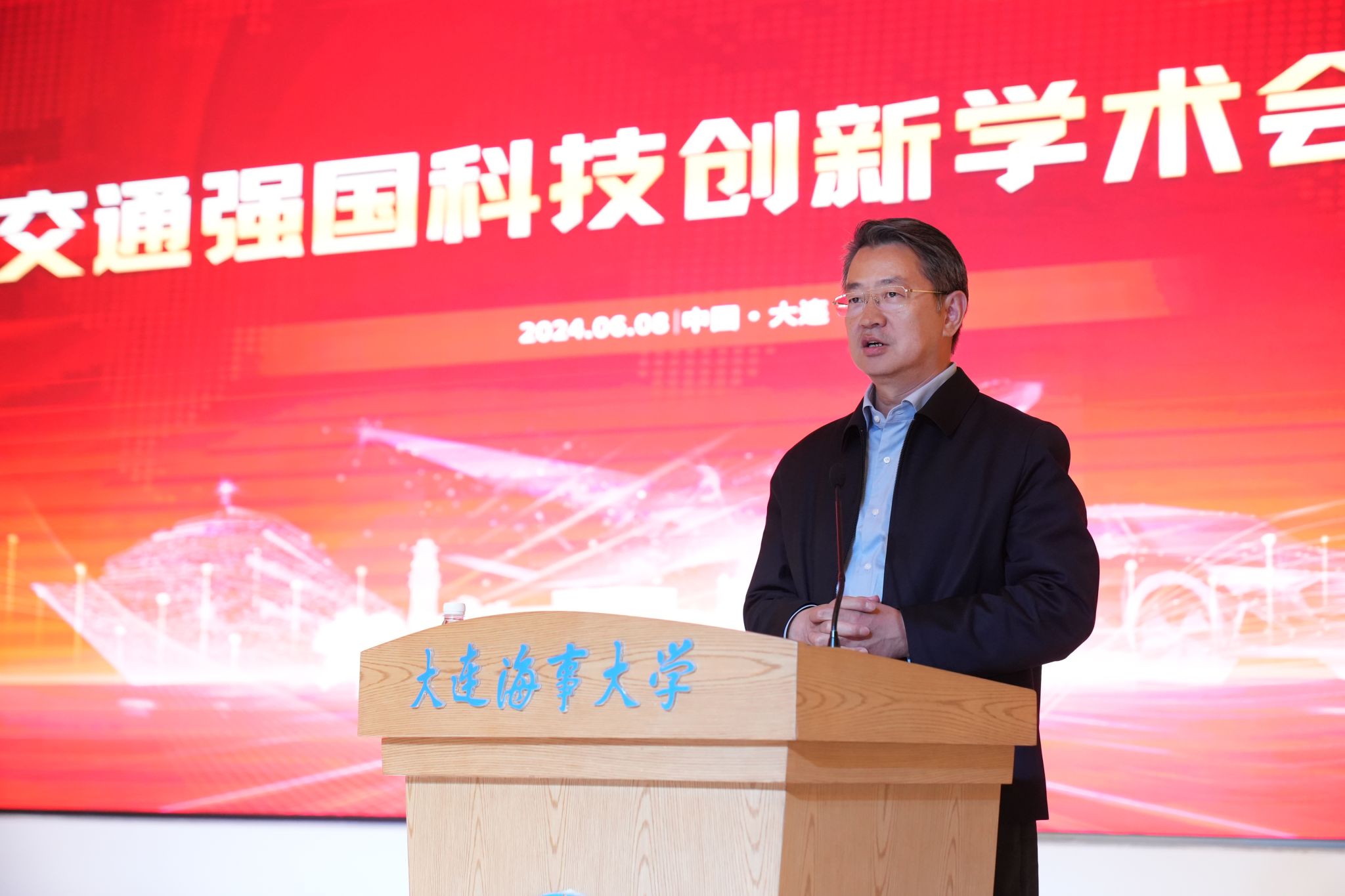 2024年是《交通强国建设纲要》印发五周年。为深入贯彻交通运输部党组关于“奋力加快建设交通强国,努力当好中国式现代化的开路先锋,以交通运输高质量发展服务强国建设、民族复兴伟业”的重要部署,共享交通运输领域学术专家真知灼见,促进交通强国试点高校经验交流、协同创新,进一步准确把握加快建设交通强国面临的新形势、新任务。6月8日,“交通强国科技创新学术会议”在我校新图书馆报告厅隆重召开。中国海洋大学李华军院士、中国石油勘探开发研究院刘合院士、南京水利科学研究院胡亚安院士、海军潜艇学院笪良龙院士、大连化学物理研究所陈忠伟院士,交通强国建设试点高校代表:同济大学党委书记方守恩教授、大连理工大学校长贾振元院士、长安大学校长沙爱民教授、西南交通大学校长闫学东教授、东南大学常务副书记刘攀教授、武汉理工大学副校长张笛教授、北京工业大学副校长翟天瑞教授、集美大学副校长黄新华教授、北京航空航天大学交通科学与工程学院院长杨世春教授、北京交通大学科学技术研究院院长王洪伟教授,会议支持单位中国航海学会李世新副理事长,以及我校全体在校校领导出席会议。会议由校长单红军主持。
