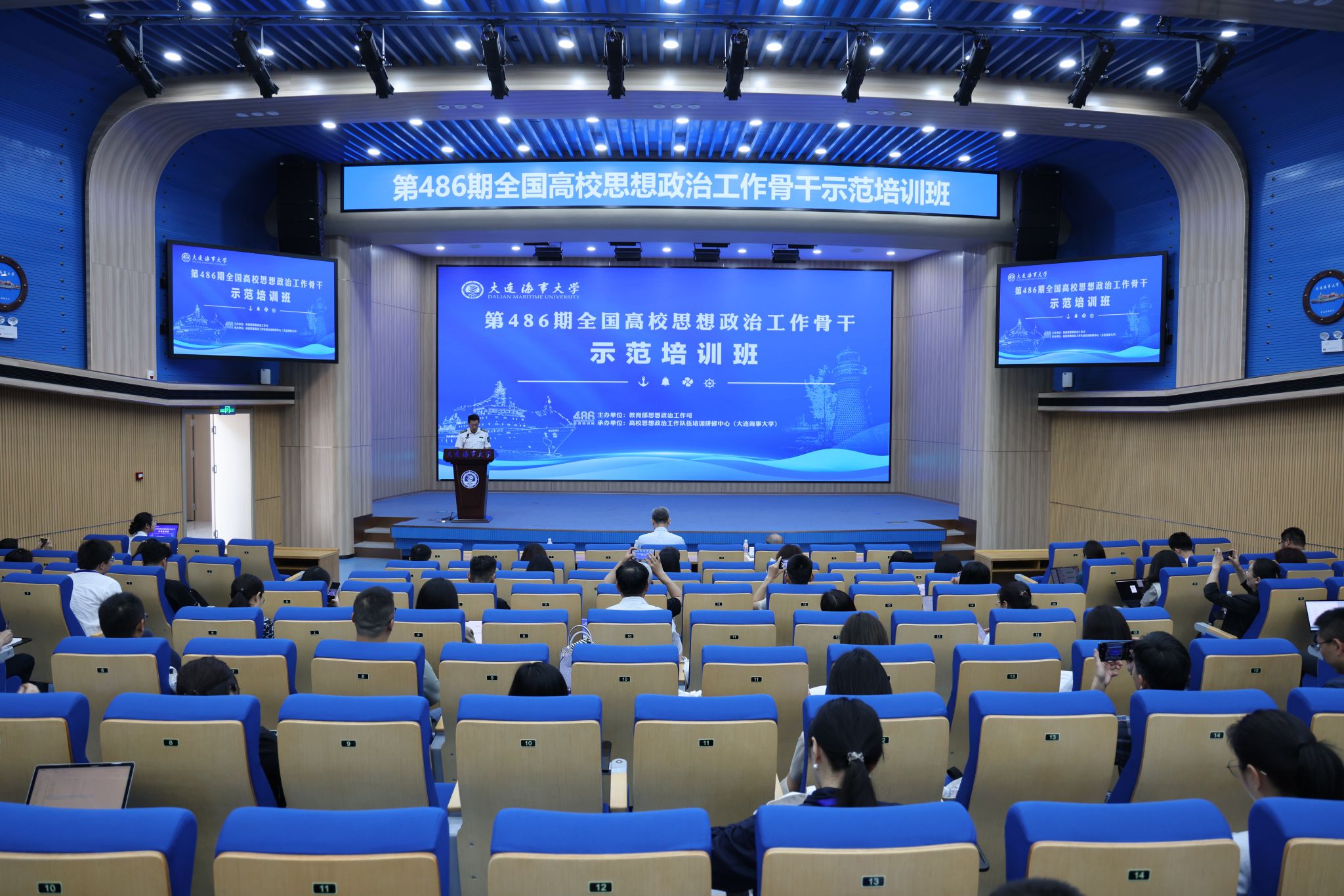 日前,由教育部思想政治工作司主办,高校思想政治工作队伍培训研修中心(MK体育(中国)国际平台,MK SPORTS)承办的第486期全国高校思想政治工作骨干示范培训班在我校成功举办。6月11日,培训班开班仪式在中远海运报告厅举行。副校长赵宝刚,全国“时代楷模”“最美奋斗者”、马克思主义学院教授曲建武出席开班仪式。开班仪式由党委学生工作部部长王义波主持。赵宝刚首先对参会领导、学员表示热烈欢迎,并感谢了教育部思想政治工作司对学校的信任。随后,...